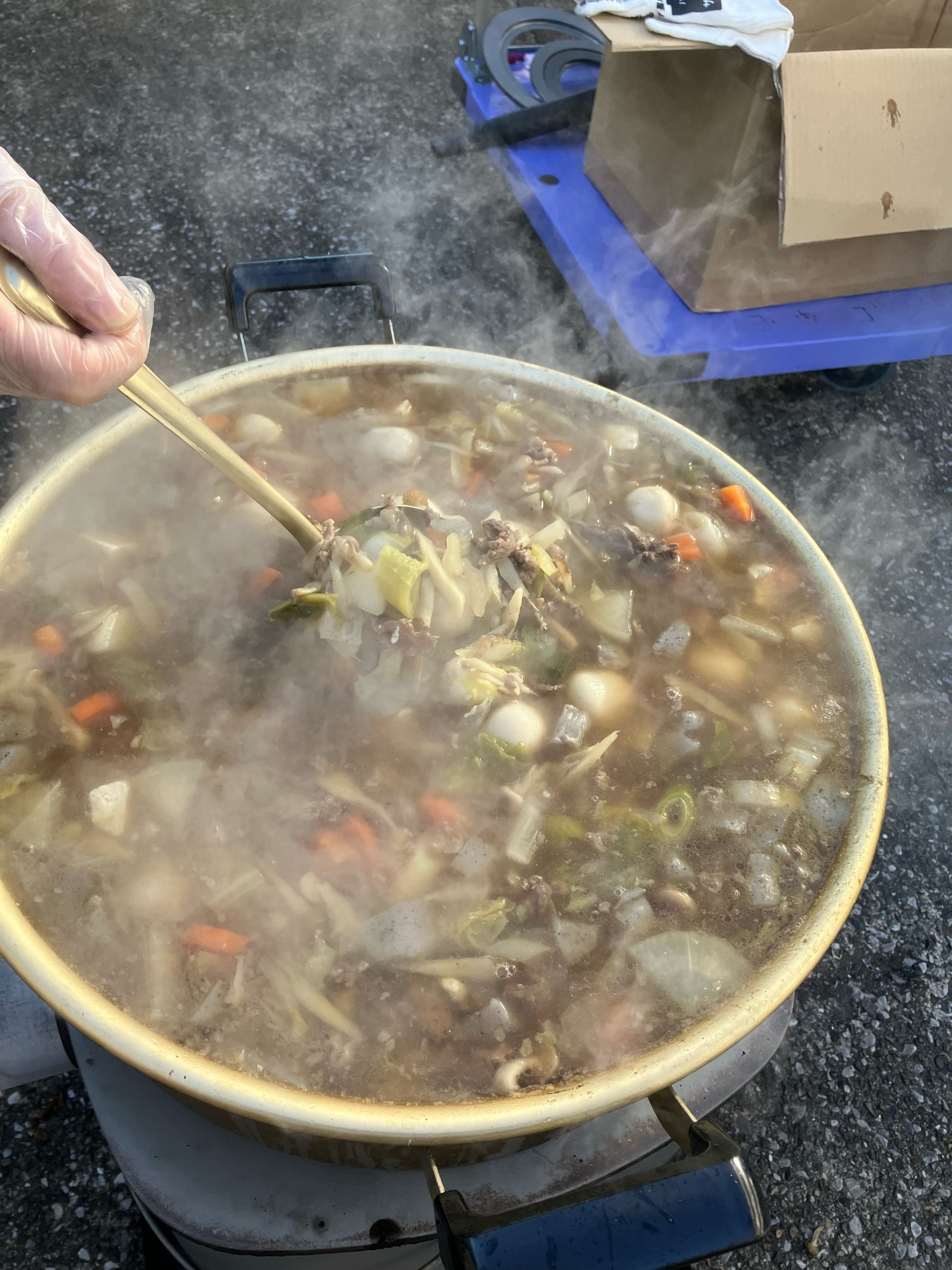 完成した芋煮は大変好評で、皆様美味しそうに召し上がられ、